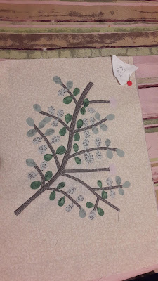 I have been thinking on a Yoko Saito for ages, after much pondering I have found and ordered Strolling Along Paths of Green. There is a beautilful quilt what I have chosen, including 12 panels with much hand embroidery. Now I am working on the panels, and I am using machine applique. The photos do not give justice, the real ones are even more gorgeous!